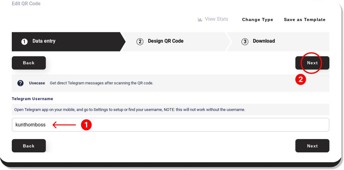Telegram คือ QR โค้ดที่เมื่อสแกนแล้วจะเปิดหน้าต่างการสนทนาในแอป Telegram พร้อมชื่อผู้ใช้ที่กำหนดไว้ล่วงหน้า ซึ่งช่วยให้ผู้ใช้สามารถเริ่มการสนทนาได้ทันทีโดยไม่ต้องค้นหาเอง